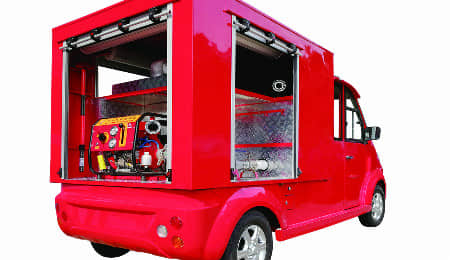 | Basic configuration | Electric power steering, power brake, aluminum alloy wheels, cup holders (2 in the front), independent plastic seats, patterned aluminum floor, stretchable mesh rain curtain, radio + USB interface + speakers (2), on-board charger, lead-acid maintenance-free battery, openable sheet metal front hood (sheet metal front bumper injection molded front grille), openable lockable tailgate (sheet metal rear bumper), aluminum alloy battery frame, vehicle tools. |